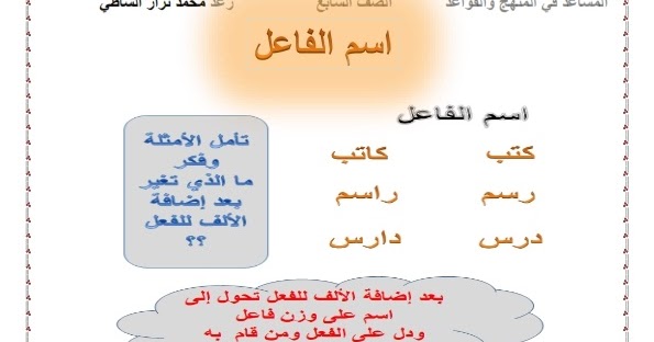 حل وشرح درس اسم الفاعل في اللغة العربية للصف السابع الفصل الثاني