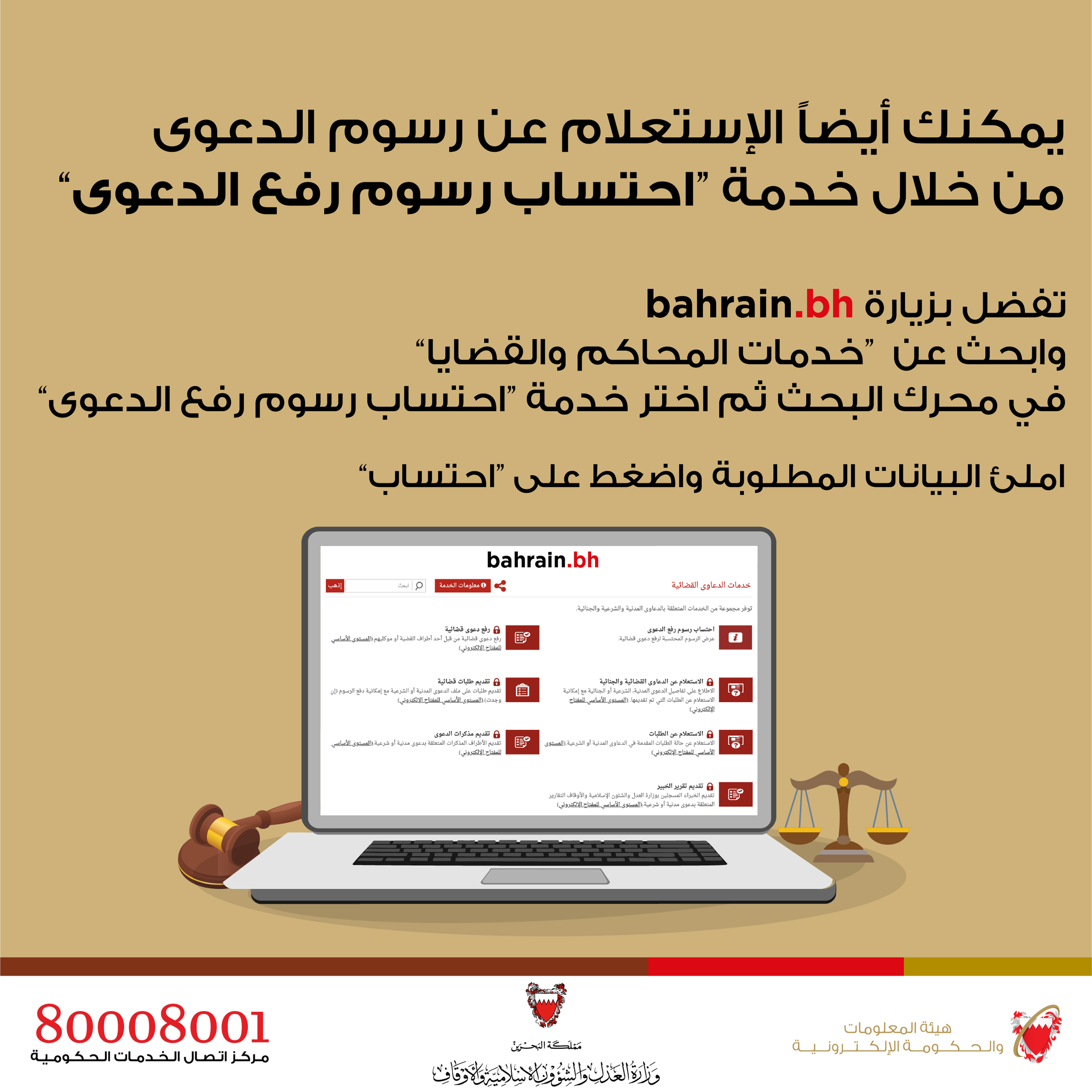Iga Bahrain على تويتر يمكنك أيضا الاستعلام عن رسوم الدعوى من خلال خدمة احتساب رسوم رفع الدعوى إلكترونيا عبر خدمة المحاكم والقضايا Https T Co Uigswfwiwy للاستفسار يرجى الاتصال على 80008001 Https T Co Vilijtotcy